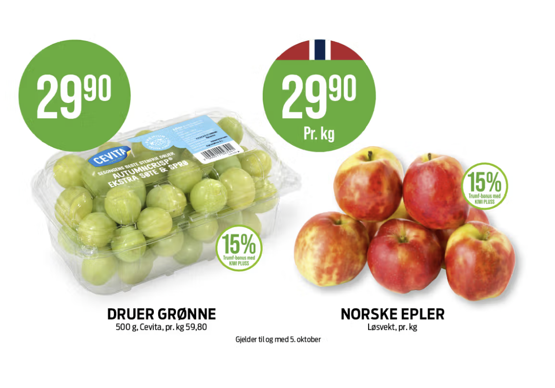 🫑 KIWI har ukentlige tilbud. Sjekk tilbudsavisen for en oversikt over varene som gjelder fra 15. september til 26. oktober